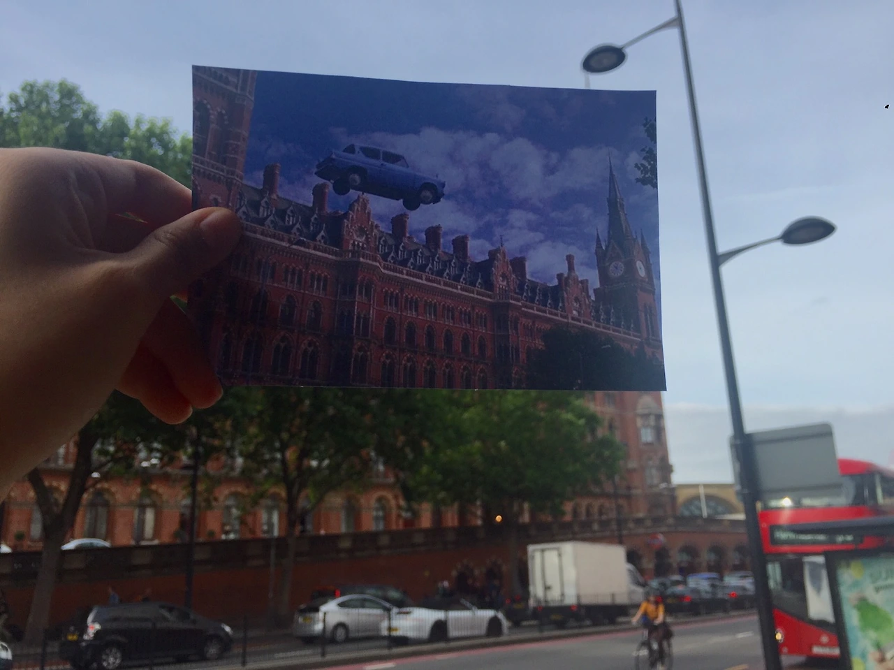 호그와트 입학이라고 해서 긴장한 여동생을 먼저 보낸답시고 쓸데 없이 뜸들이다가 몇 초 차이로 9와 4분의 3 플랫폼으로 들어가는 벽돌 포털이 닫혀버린 것이다. 낙동강 오리알 신세가 되어버린 두 소년은 학교에 제 시간에 도착하기 위해 아버지 아서 위즐리의 날으는 자동차를 타고 출발하기로 한다. 2종 면허가 있을 리 만무할 만 11세 론 위즐리는 나름 준수한 운전실력을 뽐내며 자동차를 이륙시킨다. 하지만 시골 마법사 동네에서 자란 소년이 런던 한복판에서 날아다니는 자동차가 머글 세계에서 얼마나 큰 특종감인지 알 리 없다. 해리가 옆에서 주의를 준 후에야 투명 버튼을 눌러 투명 모드로 비행한다. 론과 해리가 탄 자동차가 지나치는 그 건물이 성 팬크라스 인터네셔널 역이다. 킹스크로스 역 바로 옆에 있는 건물로 동일한 건물은 아니다.
