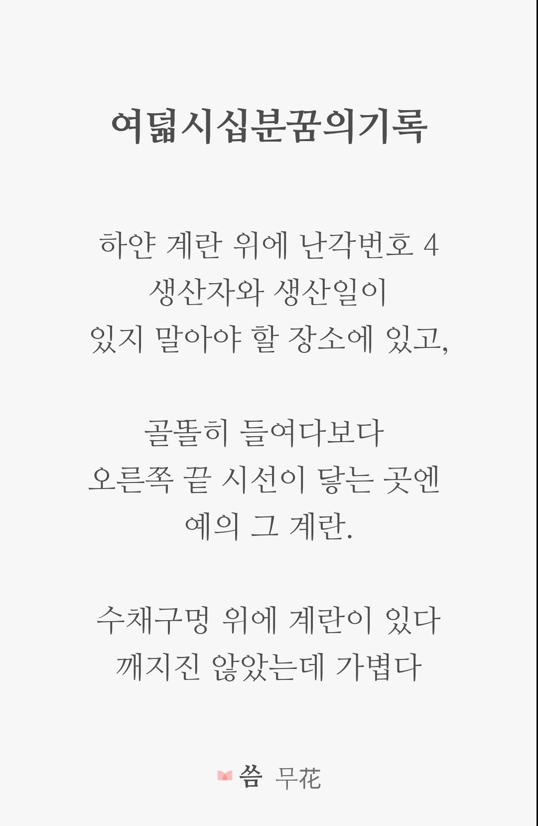 따라서 이 텍스트는 시로 완결되기보다 꿈의 기록으로 유지된다.