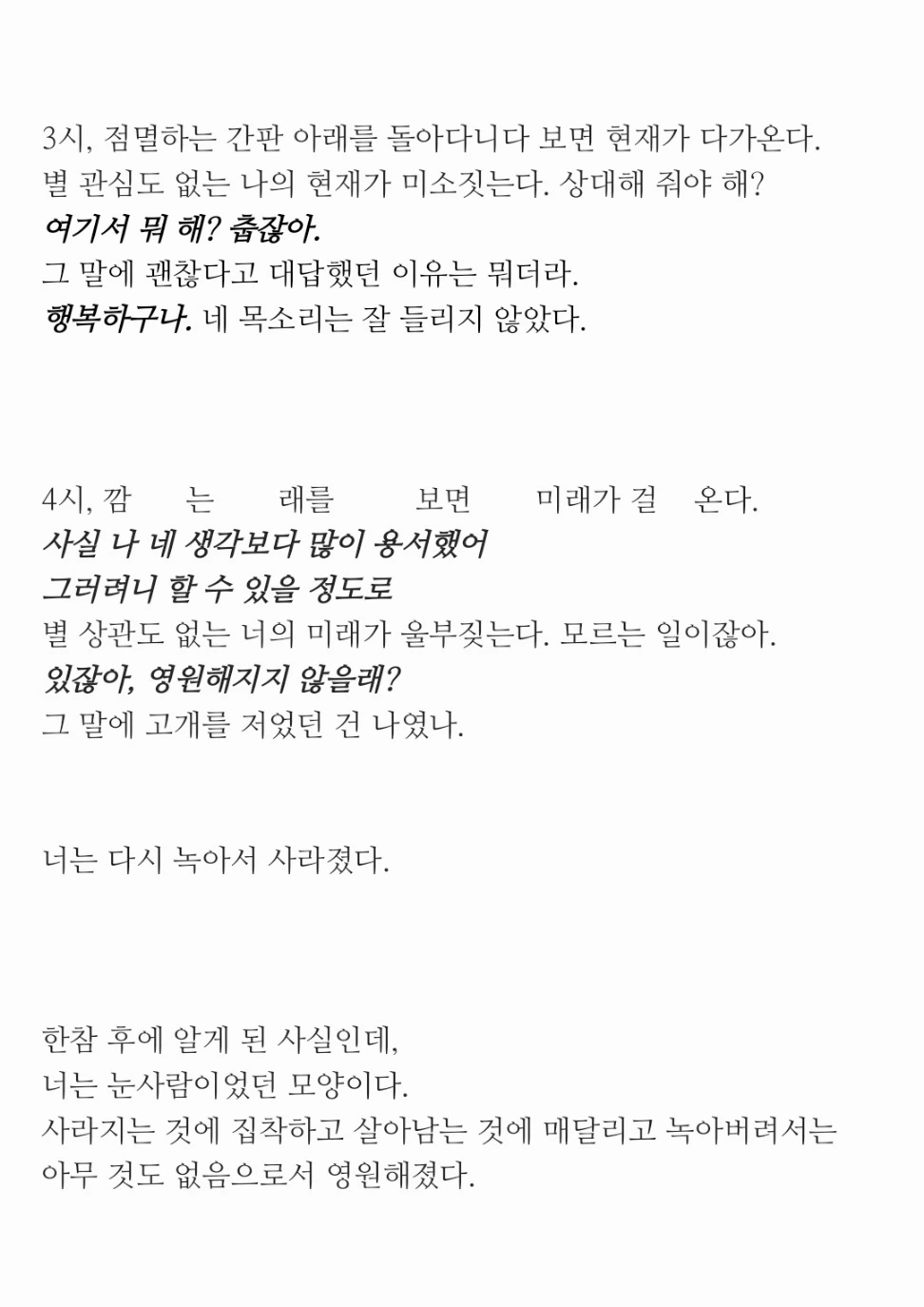 존재하지도 않았던 눈사람이 적요롭게도 그리워