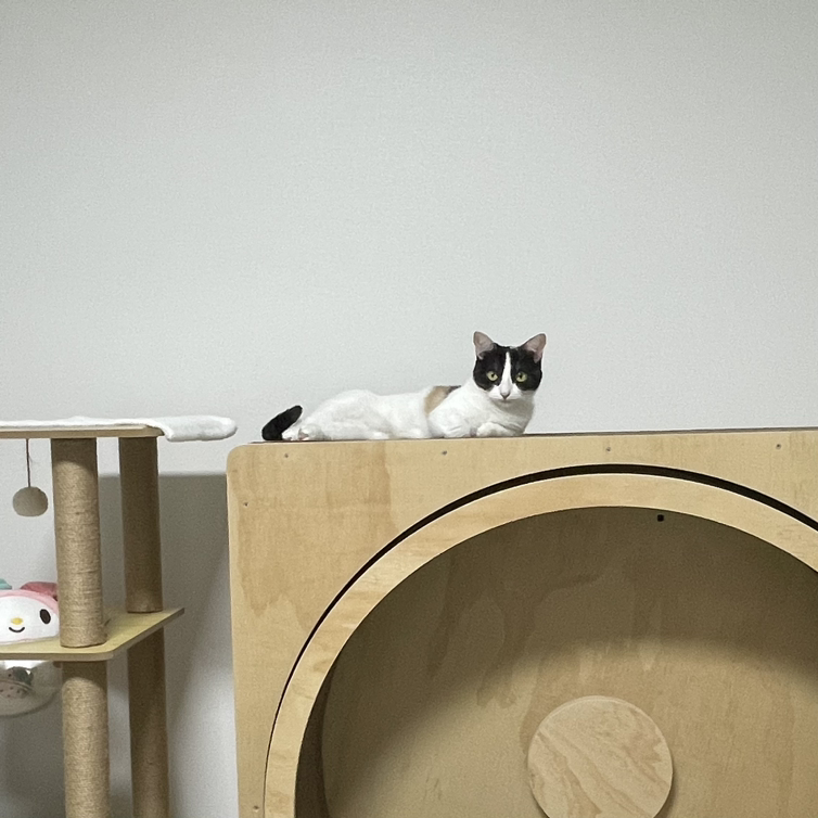 우리 집은 방이 두 개인데, 침실과 다른 방(거실 같은 방) 사이에는 부엌이 있다. 최근 순금이가 싱크대나 냉장고 위에 자주 올라가기 때문에 거기부터 살폈다. 없는 것을 확인하고 다른 방에 가자마자 순금이가 보였다. 순금이는 베란다와 이어지는 샷시(?)에 부착해 놓은 창문 캣타워에 등을 보인 채 누워 있었다.