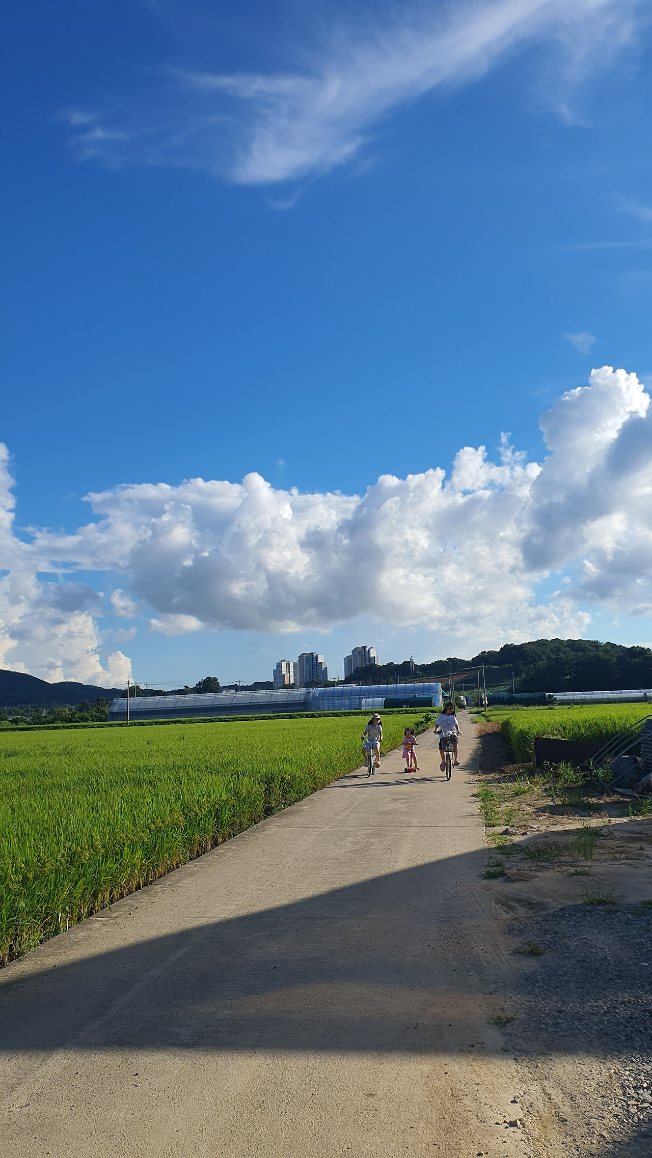 우리 가족에게 부모님을 찾아가는 일은 어떤 이벤트가 아니라 일상이다. 차로 한 시간 정도의 거리에 살고 있어 주말마다 부모님 댁에 남편 차를 타고 간다. 아이들은 밭에서 일하는 할머니를 쫓아다니거나 자전거를 타고 밭 주변을 돈다. 파란 하늘과 날아다니는 새를 구경한다. 평소 밟지 못하는 흙을 밭에서 밟고 논다. 아이들은 그 속에서 성장해 나간다. 조부모님의 사랑을 받고 무럭무럭 자라난다. 남편과 나도 부모님의 사랑을 받으며 조금씩 마음을 넓히고 사랑해 간다.