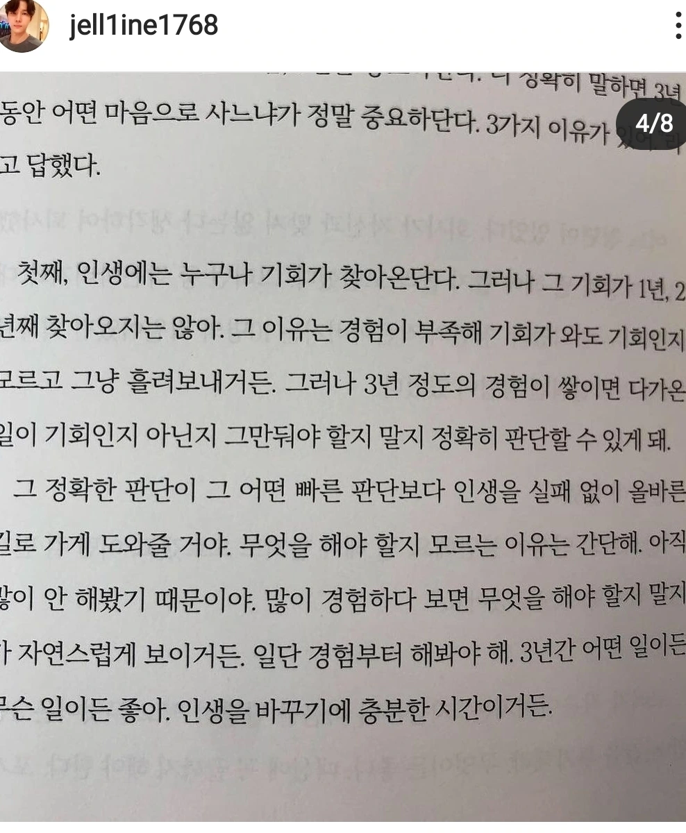 제게 와닿은 문장이 있습니다. '3년간 고생하면 인생이 바뀐다.'