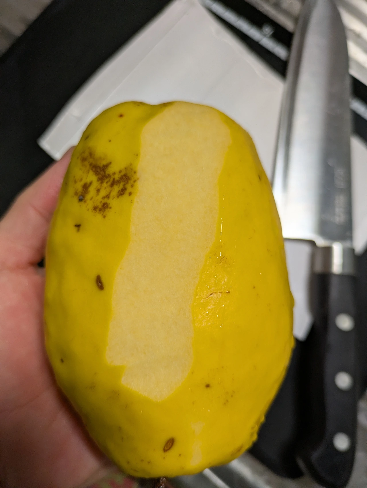 모과 한 알을 깎고 채 써는 동안