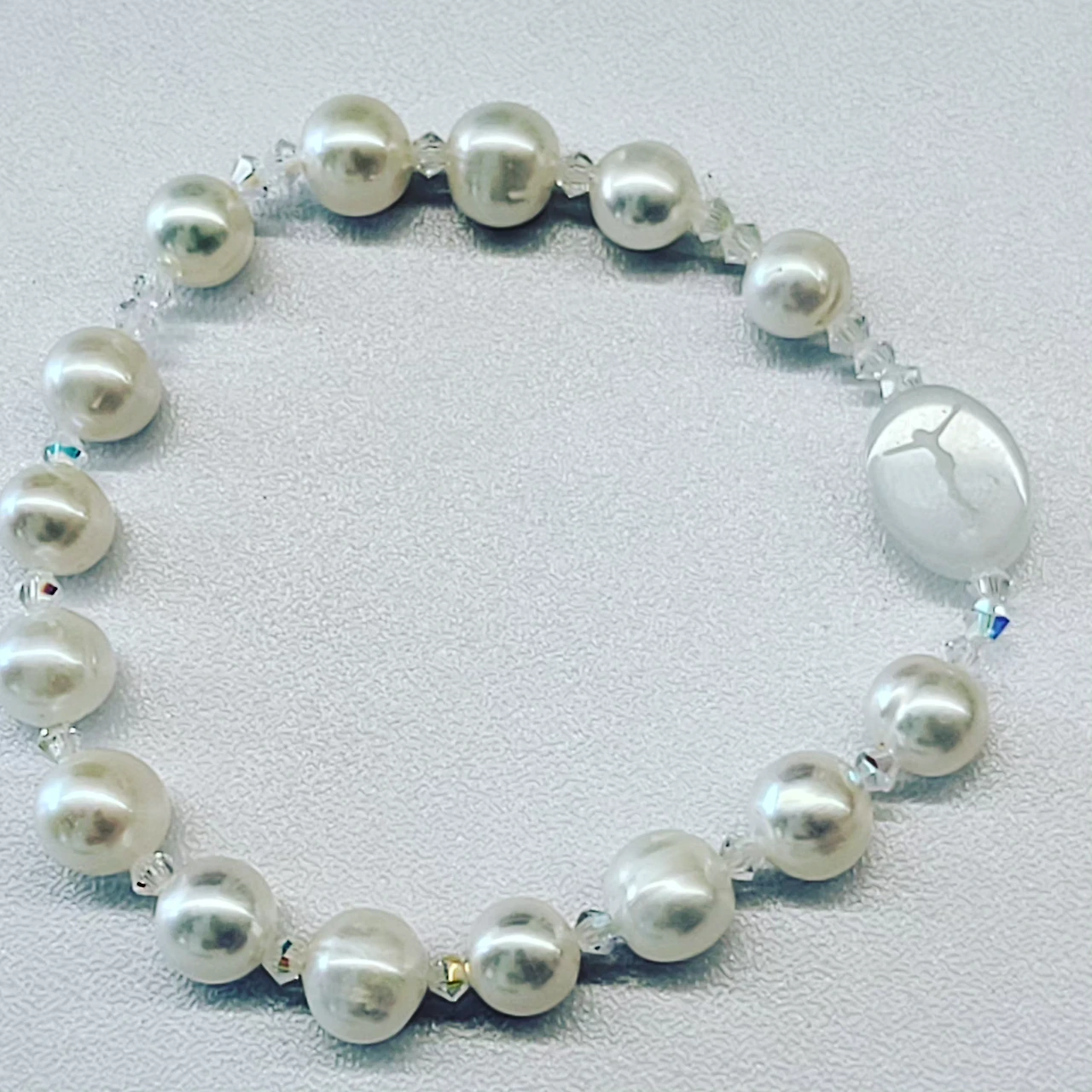 결국 나는 반짝반짝 빛이 나는 진주 비즈와 크리스털 비즈로 엮어진 묵주를 회사 사무관님 선물용까지 함께 두 개를 샀다.