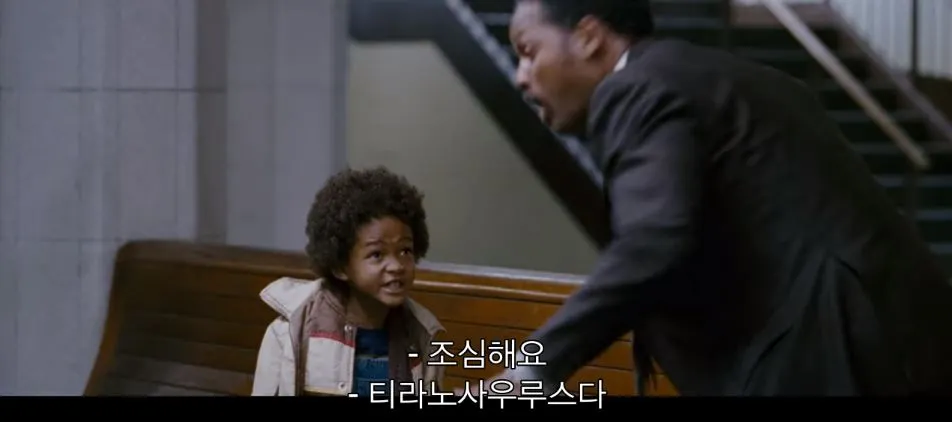나의 눈물을 아이에게 보여주지 않고 윌 스미스처럼 공룡놀이라도 신나게 해 주고, 아이가 잠이 들면 울었어야 했는데. 참 쉽지 않았습니다. 영화는 결국 행복한 결말인데요, 결말과 상관없이 지하철역에서 공룡놀이를 하며 티라노사우르스를 피할 동굴을 찾다아이를 화장실로 데려가, 휴지이불 위에 아이를 재우고 그제야 흐느낀 아빠의 모습. 그걸 보며 마음이 동했던 기억이 있습니다.