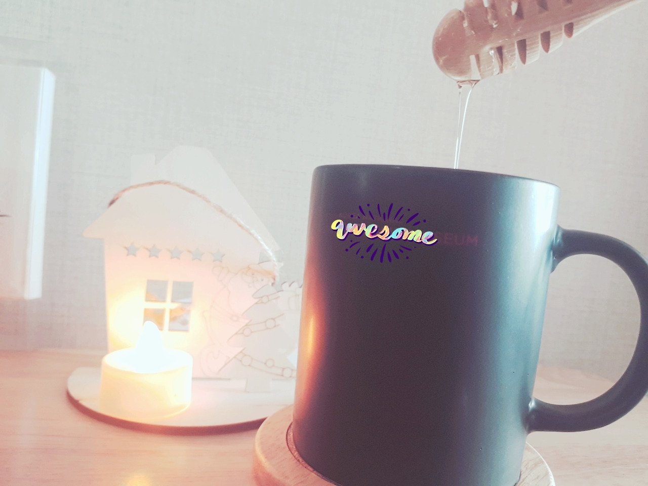 좀 피곤할 땐 커피에 꿀 한술 타는 걸 좋아하는 남편이에요. 피곤한 이야기를 했으니, 꿀 정도는 뭐.