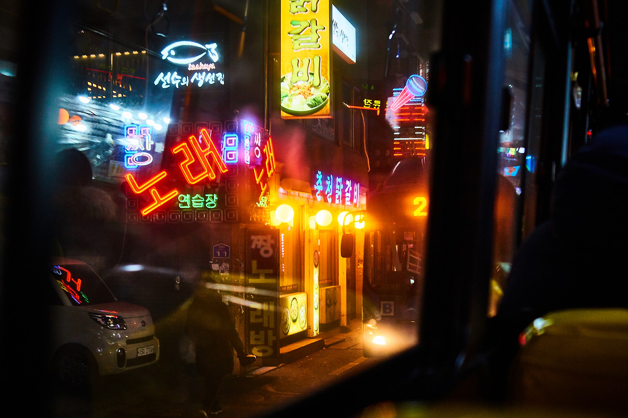 얼마 전, 마을버스에서 무심코 바라본 풍경은 SF의 한 장면 같았다. 서울 구석에 자리한 ‘춘천’ 닭갈비, 이제는 한물 간 유행어 ‘짱’ 노래방, 지 혼자 세련된 느낌의 이자카야까지. 여기에 노랗고 붉고 퍼런 이런저런 불빛이, 비치고 반사되고 뒤섞인 모습은 딱 그거였다.