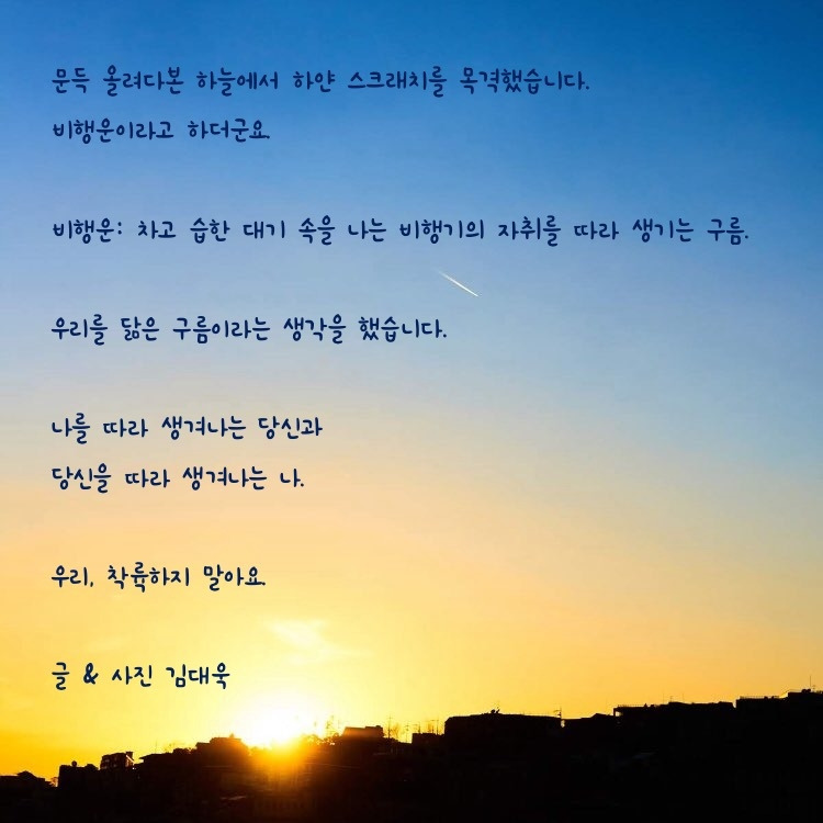 문득 올려다본 하늘에서 하얀 스크래치를 목격했습니다.