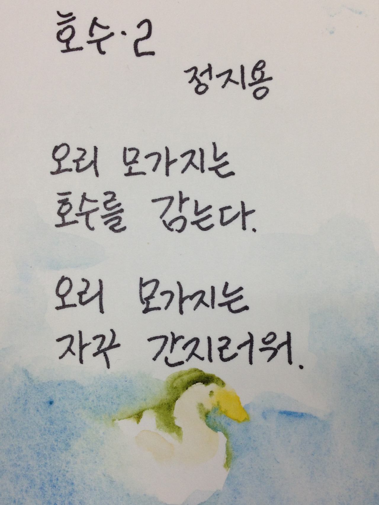 시인은 오리 모가지가 호수를 감는다고 노래했는데요.