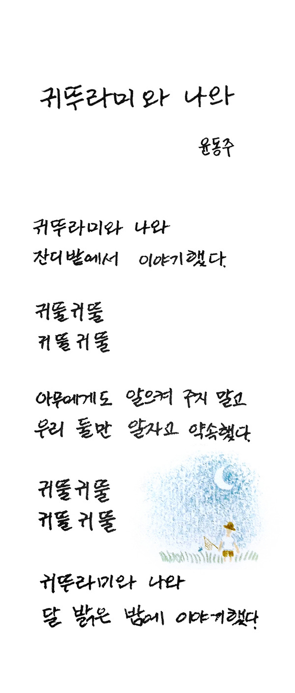 귀뚜라미가 풀밭에 자리잡고 귀뚤귀뚤 노래하지요.