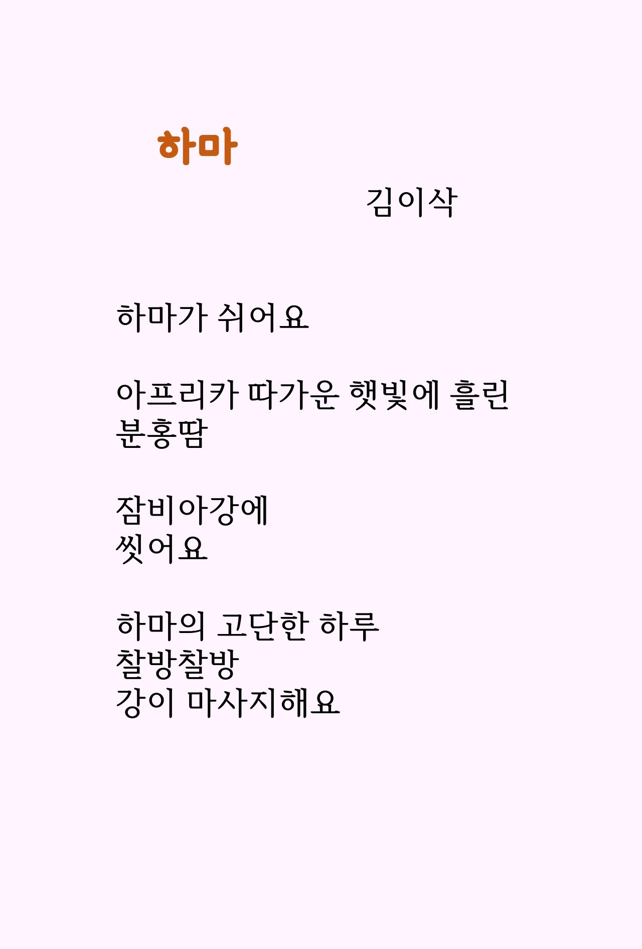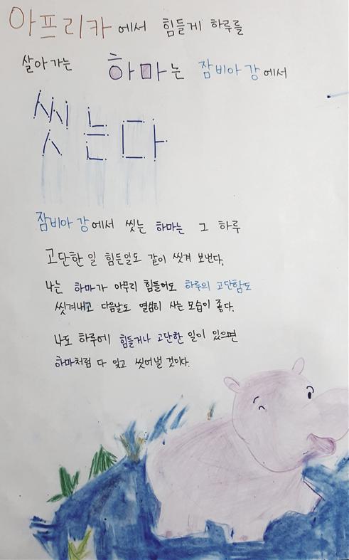 엄은서 : 소만초등학교 6학년입니다. 저는 플루트 부는 것과 그림 그리는 것을 좋아합니다. 먹는 것도 좋아합니다.