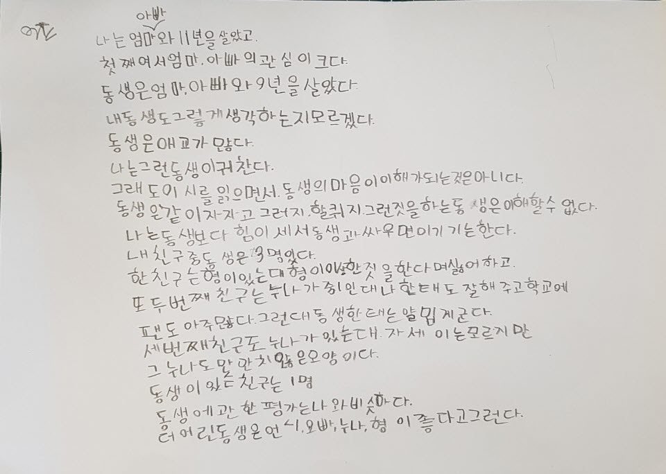 더 어린 동생은 언니, 오빠, 누나, 형이 좋다고 그런다.