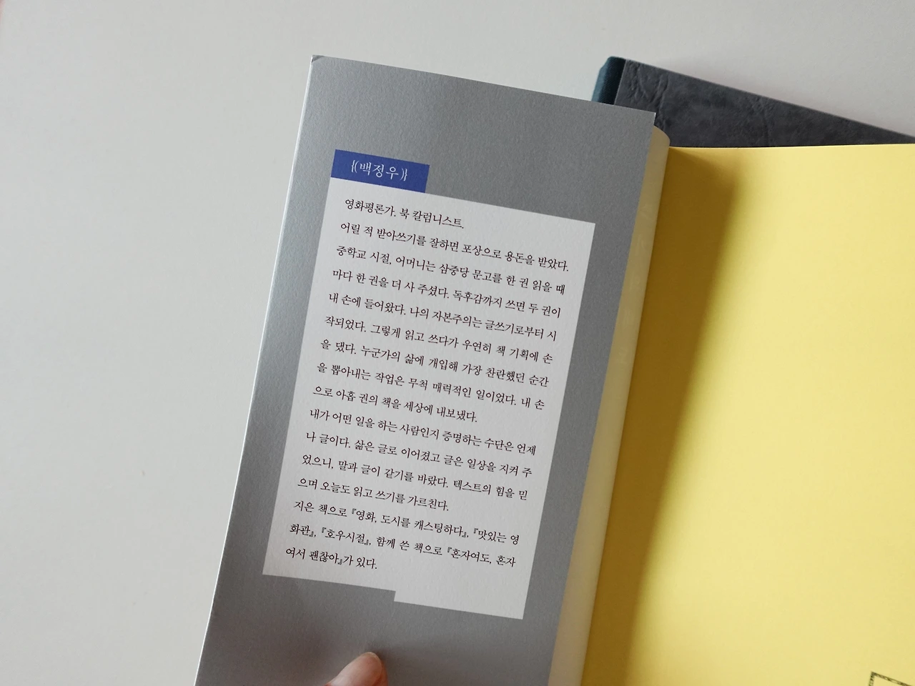 작가의 글쓰기 태도는 단순하다. “쓰고 싶어서 쓰는 사람”이어야 한다는 것이다. 결국 글은 목적이 아니라 과정이고, 정답이 아니라 질문이라는 사실. 세상과 단절되지 않기 위해, 마음의 깊은 곳을 어루만지기 위해, 그리고 결국 타인과 연결되기 위해 쓰는 것이다.