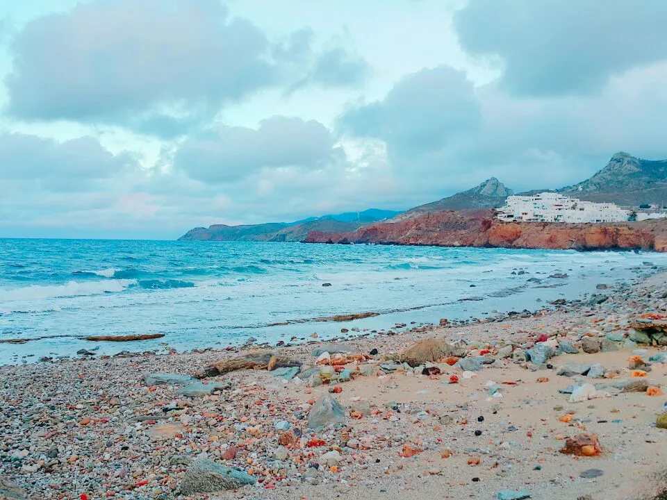 영롱한 하늘 빛과 창백한 하이얀 건물들, 파란 파도소리가 아름다움을 더했다.