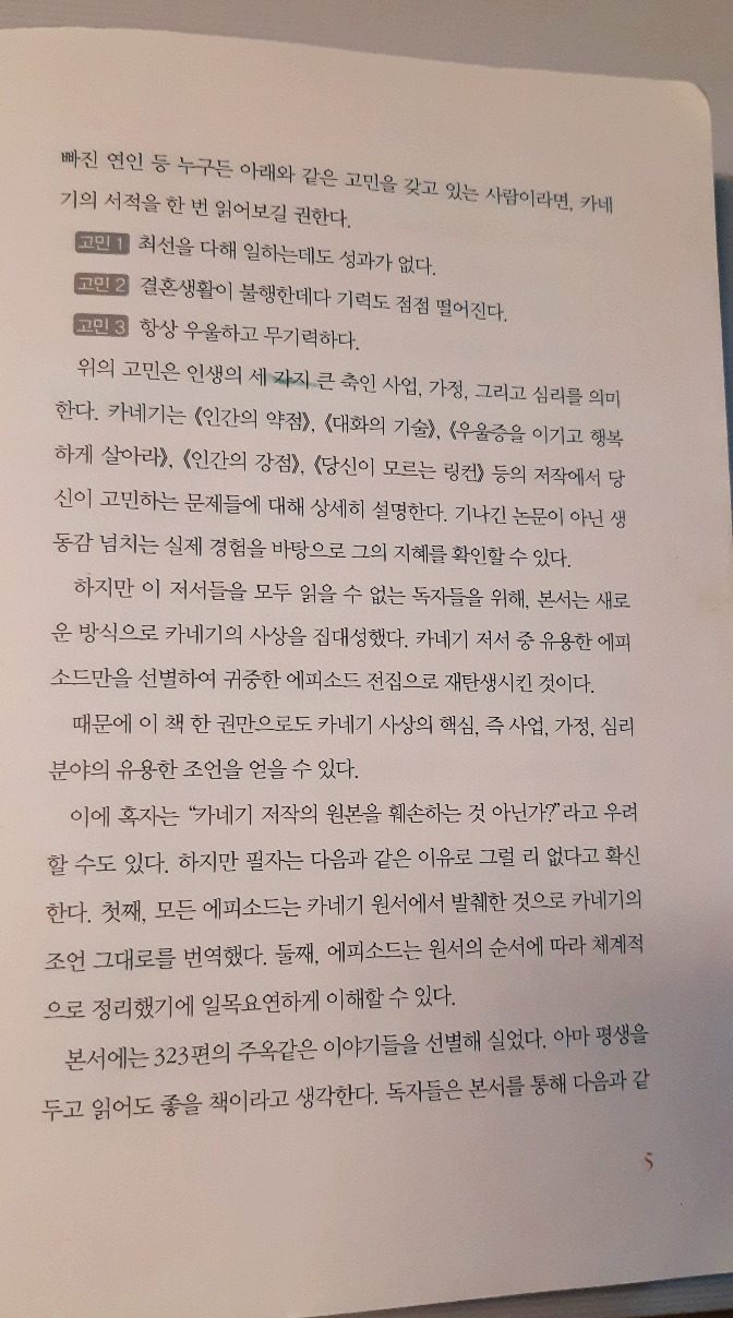 나는 데일 카네기의 철학을 집대성한 책이자 에피소드 모음집인 [한 권으로 읽는 데일 카네기]를 읽으며,