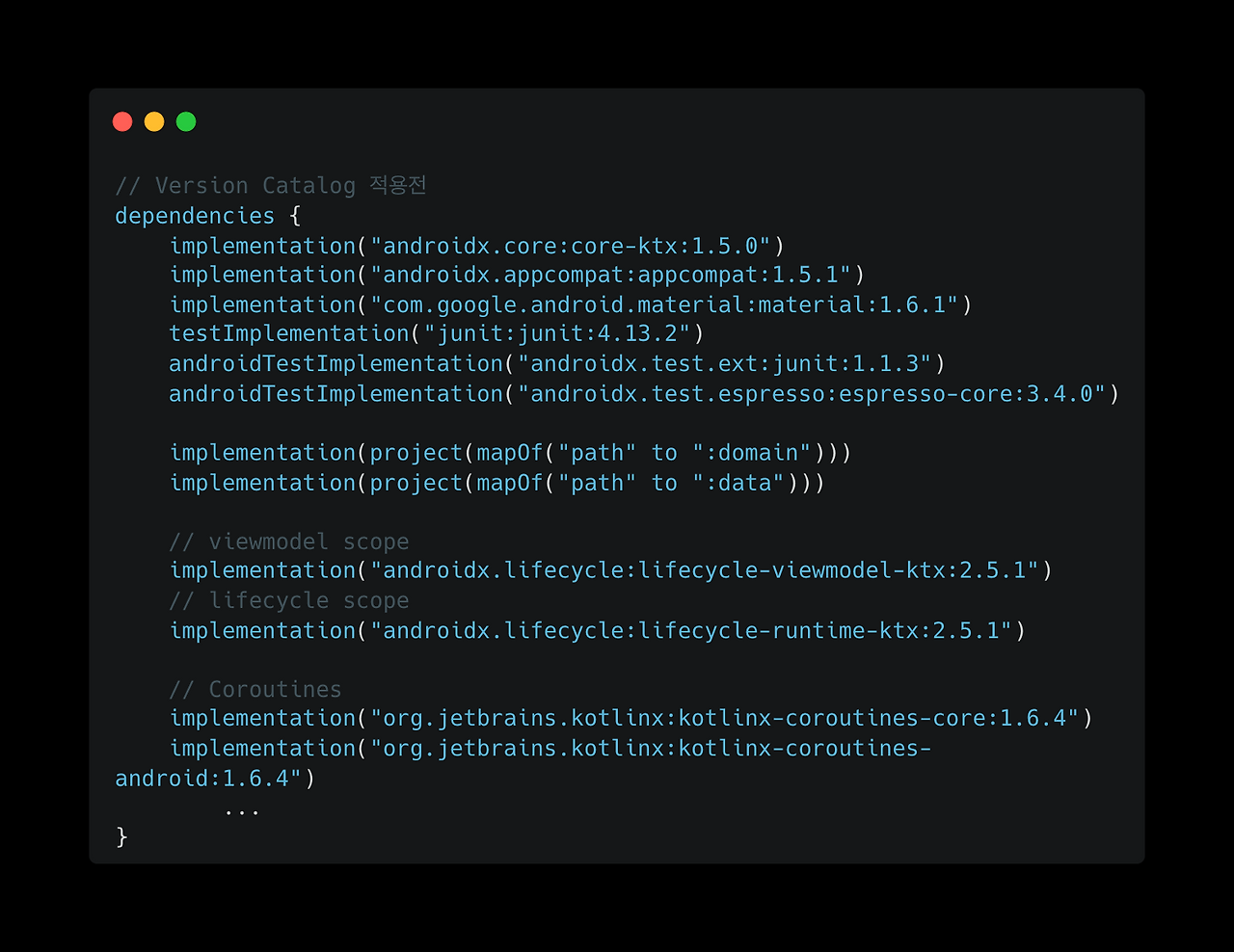 적용을 하기 전 Version Catalog를 활용하여 gradle의 변화에 대해서 먼저 살펴보도록 하겠습니다.