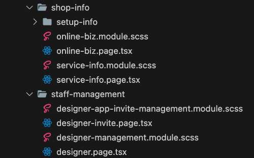 이를 위해, 하나의 파일로 되어있는 common 파일을 페이지 단위로 쪼개어 각 페이지의 기능 개발을 할 수 있는 환경을 구축하기로 하였고, 마크업 내재화의 과도기적 성격으로 기존에 next.js에서 기본적으로 제공하는 module.css를 활용하기로 하였습니다. module.css로 common에 있던 스타일을 페이지 단위로 구분하였고, 각 스타일 파일은 다른 화면에 영향을 주지 않도록 분리했습니다. 추후 컴포넌트를 제작할 것이기 때문에 공통 요소들은 지금 분리하는 것이 의미가 없다고 판단하여 여러 화면에서 공통으로 사용되는 스타일만 기존 common에 남겨두었습니다.