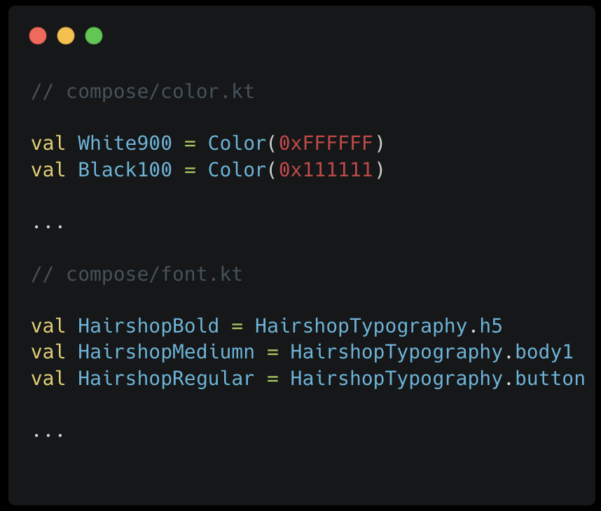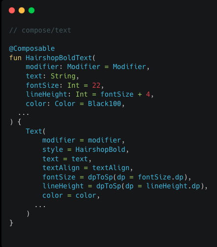 1. 카카오헤어샵에서는 Custom Font를 사용하고 있으며, 모든 Text Composable에 Style를 지정을 하게 되면 코드 직관성에 문제가 있을 것 같습니다.