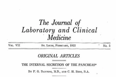 인슐린의 발견은 당뇨병 환자를 죽음에서 구한 엄청난 발견이며, 20세기 의학 발전에 아주 큰 영향을 미친 사건이다. 췌장에서 인슐린이라는 호르몬이 분비되며, 이 호르몬을 추출하여 주입하면 혈당을 낮출 수 있으며 당뇨병 환자를 치료할 수 있다는 내용을 담은 논문을 1922년 The Journal of Laboratory and Clinical Medicine지에 발표한다. 또한 밴팅은 인슐린 특허를 단돈 1.5달러에 대학에 넘겨 많은 당뇨병 환자들에게 치료의 길을 열어주었다. 뿐만 아니라 이듬해인 1923년 밴팅은 노벨생리의학상을 수상하게 되었으며, 당시 만 32세의 나이로 현재까지도 최연소 노벨 생리의학상 수상자이다.