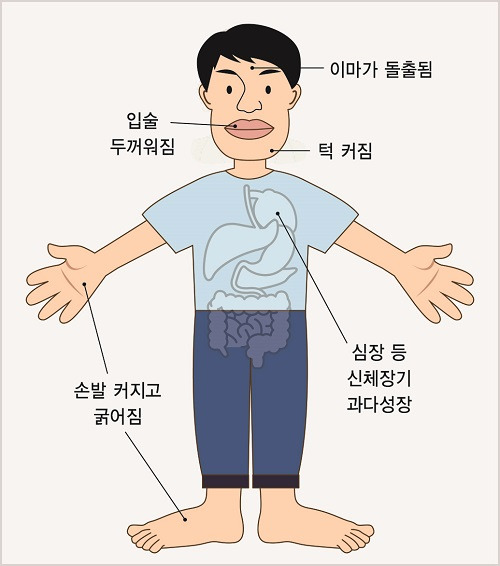 신체 말단이 눈에 띄게 커지는 질병으로 말단비대증이라고도 불린다.