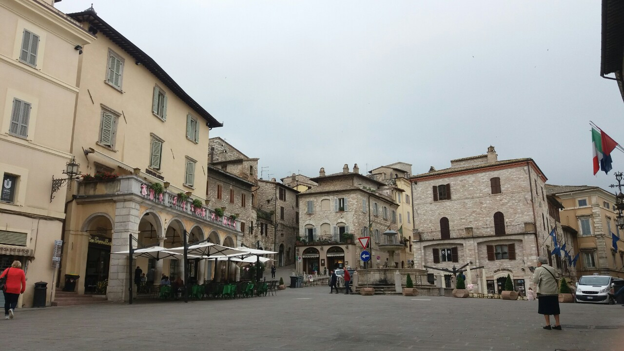코무네 광장은 아씨시에서 가장 큰 규모의 광장이다.(그렇다고 런던이나 로마같은 대도시의 광장을 생각하면 안된다!) 광장을 중심으로 미네르바 신전과 작은 분수, 여러 레스토랑들이 모여있다. 아침 일찍 나서는 길에는 대부분의 상점이 닫혀 있었다. 광장에 놓인 벤치에 앉아 동네에 해가 좀 더 들 때까지 기다렸다.