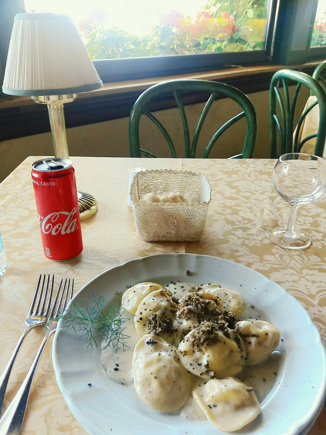 로마에서 한번 제대로 맛없는 파스타를 먹고 한국의 파스타가 제일 맛있다는 것을 깨달은 뒤, 이탈리아에서는 한국에서 잘 접하기 어려운 이탈리아 음식만 먹고 가겠다고 다짐했다. 그래서 라비올리를 시켰는데, 크림소스가 부어진 만두같아서 맛있게 먹었다. 계속 먹다보니 좀 텁텁했지만...