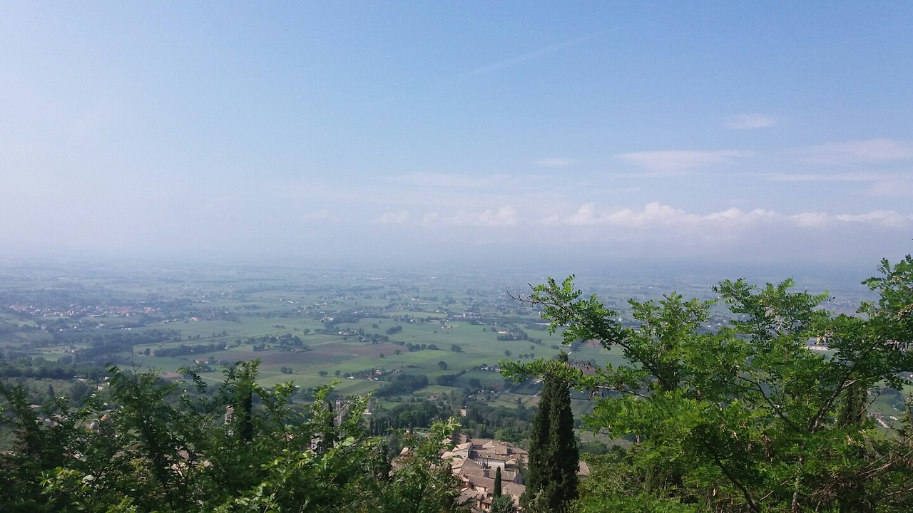 좋은 카메라를 들고 갔더라도, 그 때의 풍경은 못 담을 것같다. 시원하게 바람이 부는 와중에, 사람은 나와 가족으로 보이는 3명밖에 없었기 때문에 나무 흔들리는 소리도 시원하게 들렸다. 지평선이 보이지 않을만큼 탁트인 평원은 어제의 고난을 다 씻겨주고도 남을만큼 멋있었다. 아씨시에 있는 모든 성당들도 다 찾아볼 수 있다. 아씨시에 오기 전에는, 런던과 로마의 도시 안에만 있었다. 그곳들이 결코 서울보다는 복잡하지 않고, 도시를 걷는 재미도 충분히 있었지만, 여행 이래로 처음 만난 탁트이고 조용한 풍경에 쉽게 벅차올랐다. 어떻게 저렇게 지평선마저 흐릿하게 보일 수 있을까? 어디까지 이렇게 태평하게도 막히지 않은 평야가 뻗어져 있는걸까? 정말 말도 안되는 곳에 내가 떨어진 느낌이 들었다.