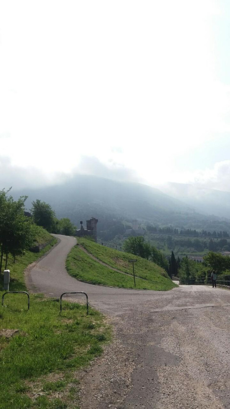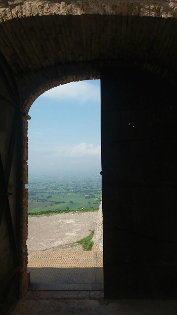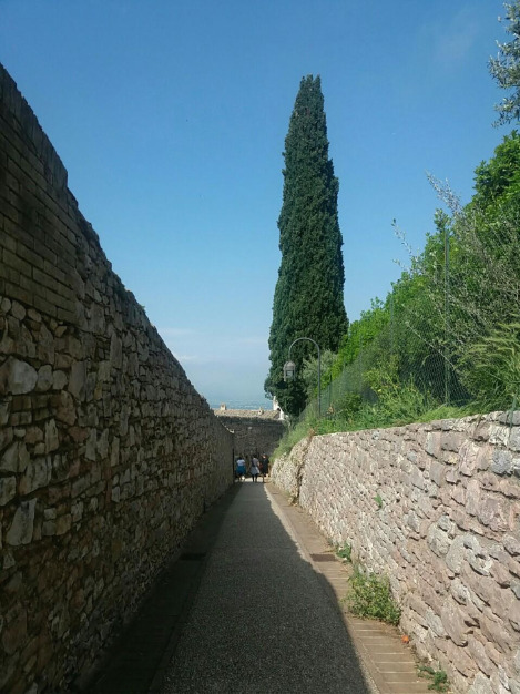 계획보다는 이르지만 그 길로 바로 로카 마죠레 성곽을 보러 이동했다. 아씨시는 동네도 작지만, 골목골목에 유명 관광지가는 팻말을 잘 달아놔서차 어딘가를 찾아가는 길이 어렵지 않다(어제는 왜그랬을까). 계단과 언덕을 좀 오르긴 해야하지만 힘들지 않다. 그리고 머지않아 영화같은 풍경을 볼 수 있다.