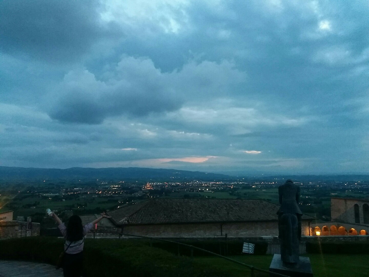 둘이서 좀 얘기를 나누다보니 비가 그쳤다. 저녁 먹기 전 시간이 남아 서로 사진을 찍어주고, 내일 떠날 때 탈 버스시간표와 정류장도 확인한 뒤, 같이 들어가 저녁도 먹었다. 내가 어제 그랬던 것처럼 엄청 맛있어하며 드셨다. 난 고작 두번째인 주제에 이것저것 익숙한 척을 해댔고...ㅎㅎㅎ 세상 제일 맛있던 델질리오의 와인을 몇잔 나눠마신 뒤 기분이 잔뜩 풀어진 우리는 통금시간 전까지 아씨시의 야경을 만끽하러 산책을 나섰다.
