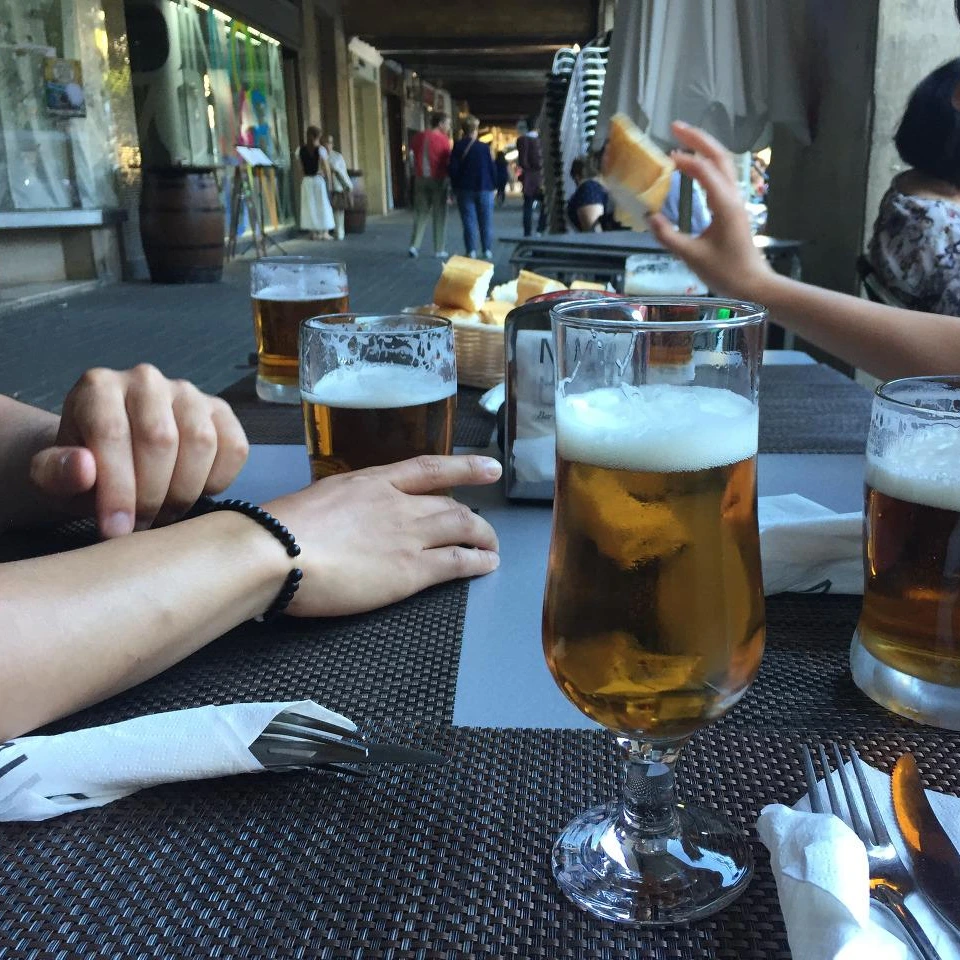S와 부산 친구들과 저녁에 다시 만나니 반가웠다. 저녁이라고 해도 아직 훤한 낮같아서 같이 축제도 좀 둘러보고 먹을때를 찾아보았다.어디서 무엇을 먹어야 할지 결정하기가 어려웠다. 여럿이서 먹는 거라 새로운 스페인 음식을 먹어보고 싶었지만 결국 잔뜩 둘러만 보다가 무난하게 광장 쪽 레스토랑 야외테이블에 앉아 맥주와 고기진 음식과 함께 만찬을 나누었다.