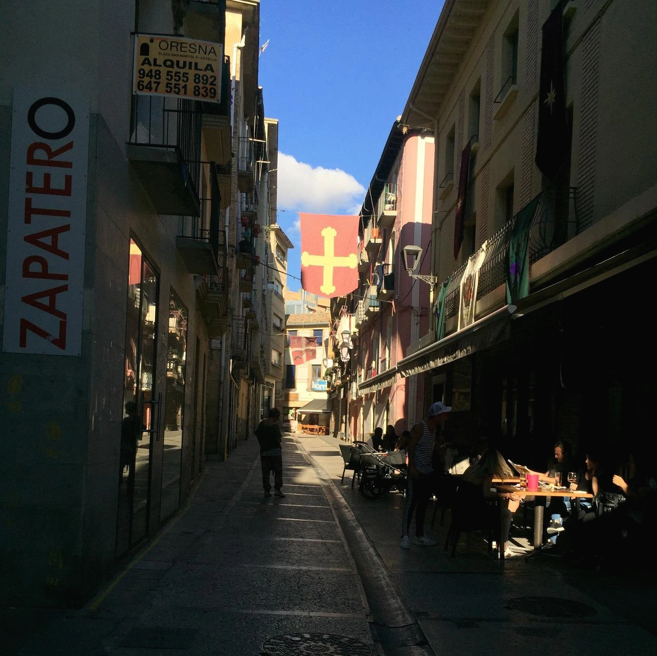 주인아저씨가 운이 좋다며 마침 오늘 에스떼야에 축제가 있다고 했다. 숙소에서 씻고 빨래하고 마을을 좀 둘러볼까 하고 나왔다. 골목골목 이런저런 상품들을 파는 가판대가 쭉 놓여있는 걸로 보아 장터 같은 것이 열리는 참이었다. 때마침 시에스타라 마켓은 잠시 쉬는 참이었는지 거리는 조용했다. 한두 시쯤 도착하여 씻고 나오면 시에스타와 겹쳐 항상 가게들 대부분 닫혀있다. 그리고 무척 뜨겁다. 바짝 마를 것 같은 쨍함.