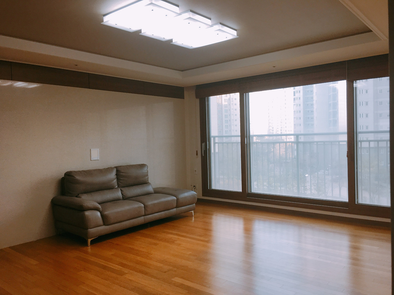 원래 34평 그 아파트 매물은 좀 어둡고 칙칙한 분위기라 젊은 사람들이 안 좋아한다고 들었는데 가격이 매력적이라 한번 보자고 하는 사장님 얘기에 들어가 봤다. 어둡고 칙칙하다던 내부를 보고 우리는 오히려 가볍지 않고 묵직한 분위기가 맘에 들었다. 거기에 높은 나무들과 함께 놀이터뷰가 나와서 아이들이 노는 모습도 거실에서 볼 수 있다는 점이 더 안심됐다. 층고도 높고 거실, 방 크기도 서울 빌라와는 비교할 수 없었다.