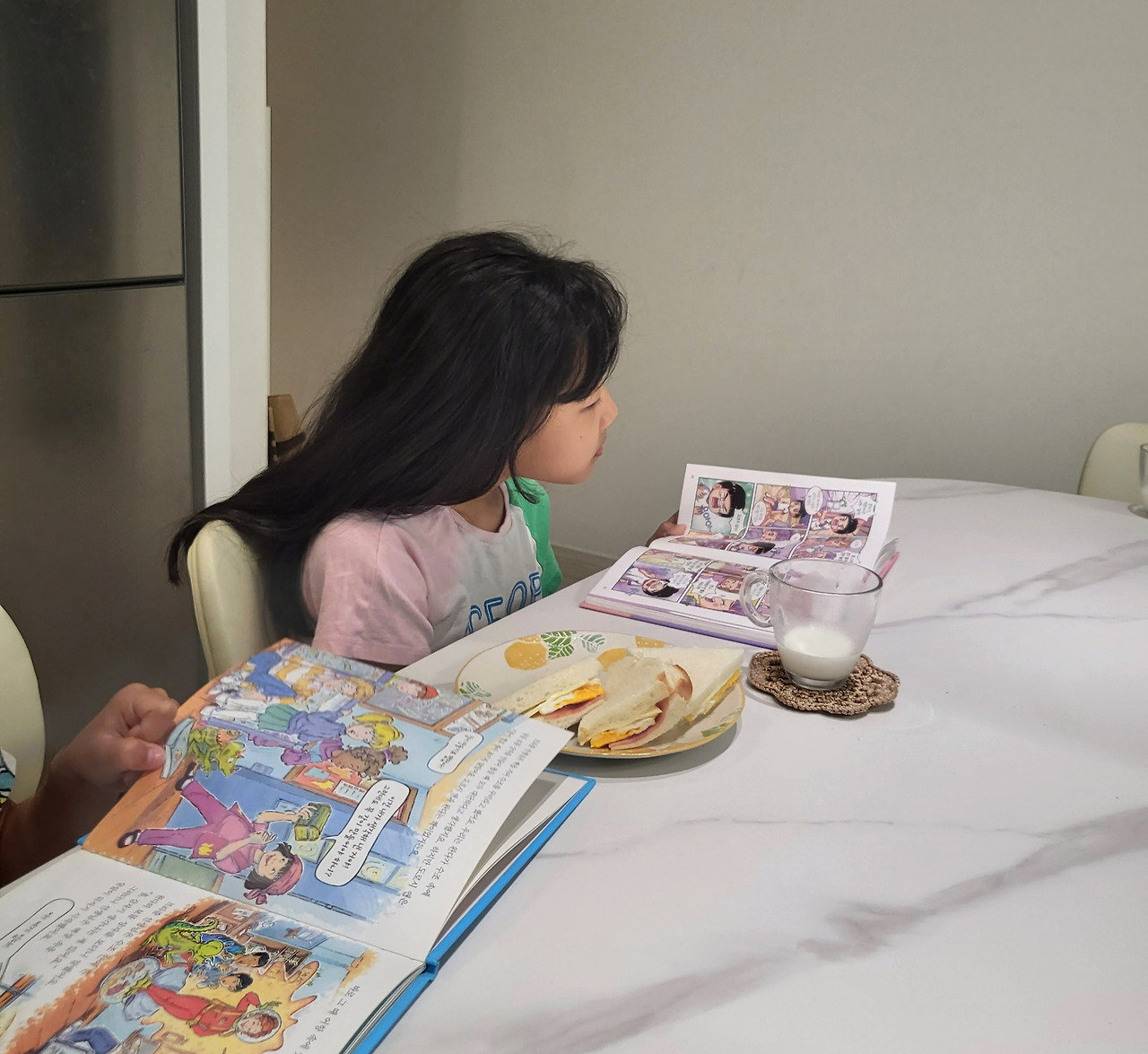 하지만 아이의 학년이 올라갈수록 전체 독서 분량에서 조금씩 줄글책의 비중을 늘려갈 수 있게 노력하는 중이다. 쉽게 '보는' 컨텐츠보단 책처럼 '읽는' 컨텐츠들을 통해 스스로 사유하고 인사이트를 얻는 과정이 얼마나 중요하고 소중한지 알기 때문에 아이들이 책 중에 특히 줄글책을 가까이하고 익숙해졌으면 하는 게 엄마로서의 희망사항이다.