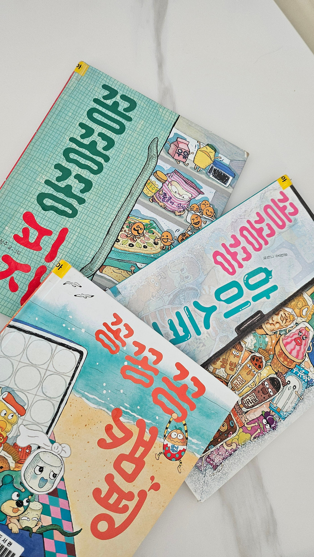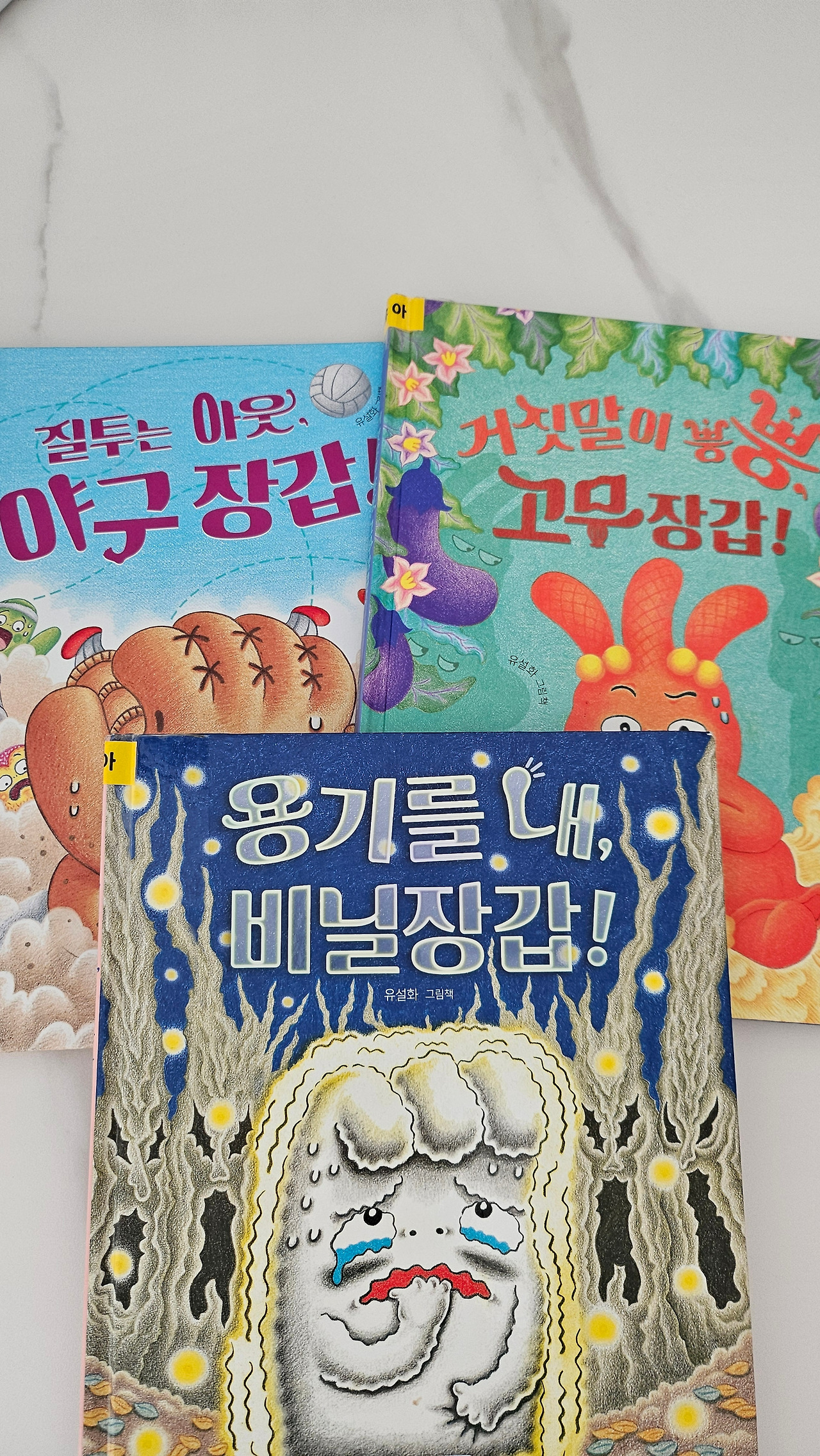 최근 반응이 좋았던 책은 장갑 시리즈(용기를 내 비닐장갑, 거짓말이 뿡뿡 고무장갑, 질투는 아웃 야구장갑)와 꽁꽁꽁 시리즈(꽁꽁꽁 피자, 꽁꽁꽁 캠핑, 꽁꽁꽁 아이스크림)였다. 언니들이 읽고 재밌는 책은 막내를 앉혀두고 선생님처럼 다시 여러 번 읽어주기까지 한다.