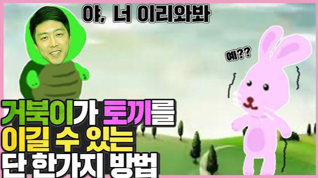 하지만 이솝 우화에서 말하는 토끼와 거북이는 단순하게 설명이 될 수 있는 게 아닙니다. 토끼와 거북이가 경주를 하면 누가 이길까요? 거북이가 이긴다고 생각하시는 분들은 동심을 유지하고 계셔서 순수하신 분들이십니다.