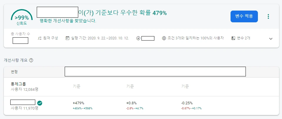 브레이즈는 A/B 테스트 하기에도 참 편리하게 만들어졌는데요. 캠페인 세팅에서 간단히 컨트롤 그룹이나 컨버전 수치를 세팅할 수도 있고, 대시보드도 실험 결과를 직관적으로 확인할 수 있게 만들어져 있죠.