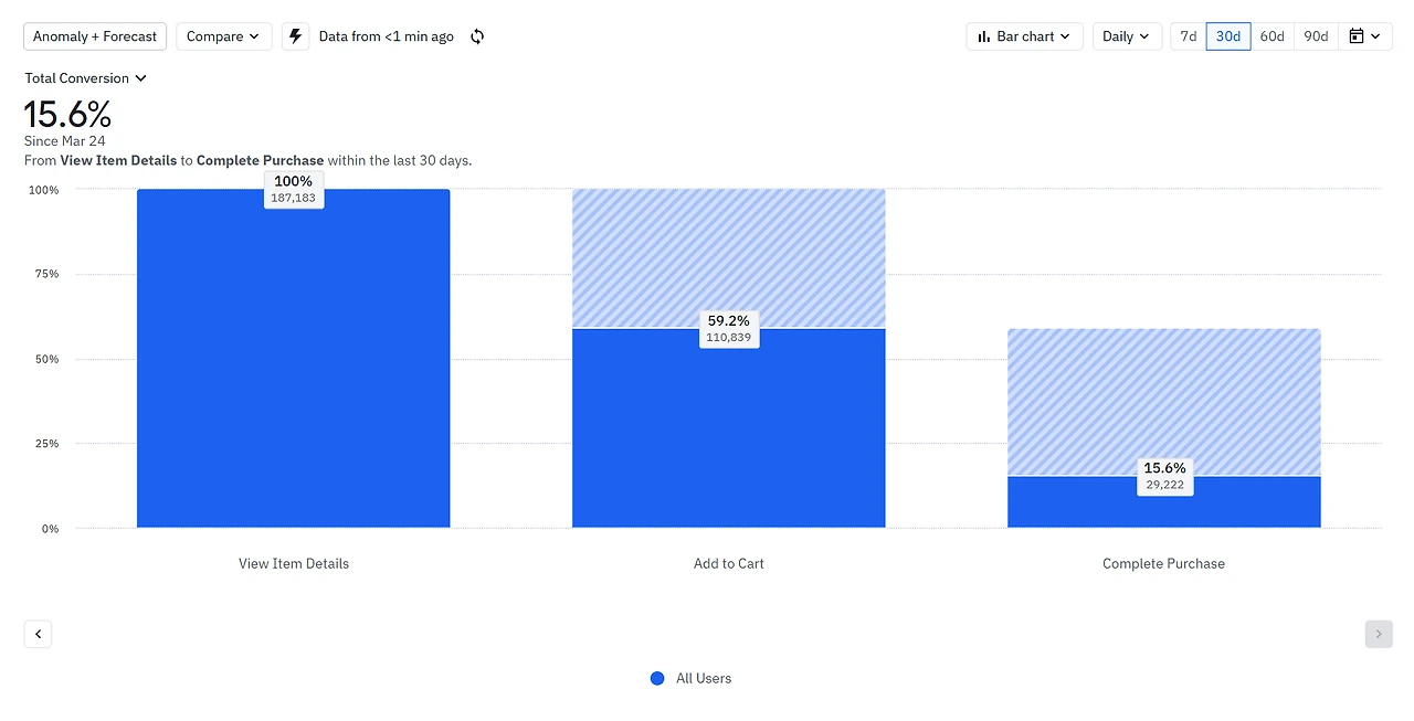 - 활용 방법: 전환 퍼널을 설정하려면 우선 고객 여정의 주요 단계를 정의해야 합니다. 예를 들어 회원 가입 퍼널은 방문 → 회원가입 페이지 진입 → 정보 입력 → 가입 완료의 단계로 나눌 수 있습니다. 각 단계에서 다음 단계로 넘어간 비율(전환율)을 계산하면 어느 단계에서 사용자가 이탈하는지 드러납니다. 가령 가입 페이지 진입 대비 정보 입력 완료율이 낮다면 입력 폼이 복잡하거나 진입 장벽이 있다는 신호일 수 있습니다. 또 구매 퍼널에서 장바구니 대비 결제 완료율이 낮다면 결제 과정의 UX 개선이나 추가 혜택 제공을 검토해볼 수 있겠죠.
