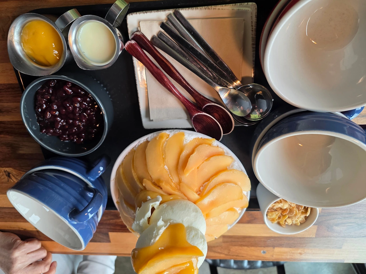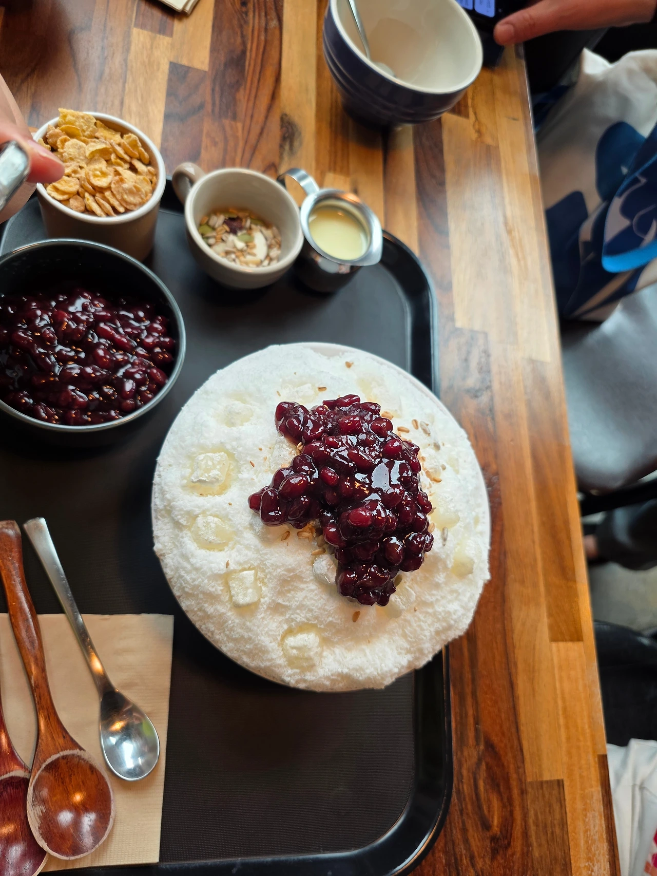 씨리얼과 약간의 견과, 연유와 여분의 팥,