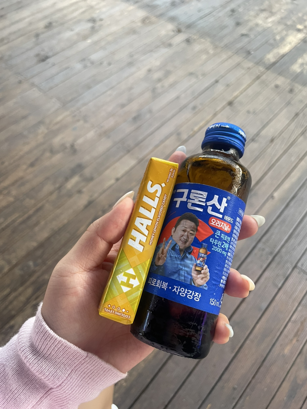 휴게소에 들렀을 때 자양강장제와 시원한 사탕을 사서