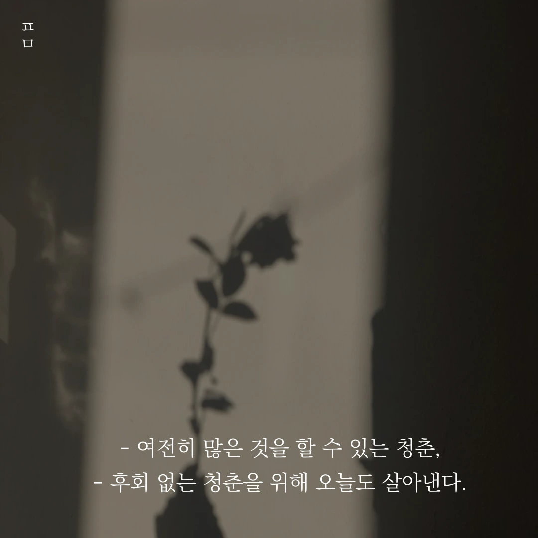 후회 없는 청춘을 위해 오늘도 살아낸다.