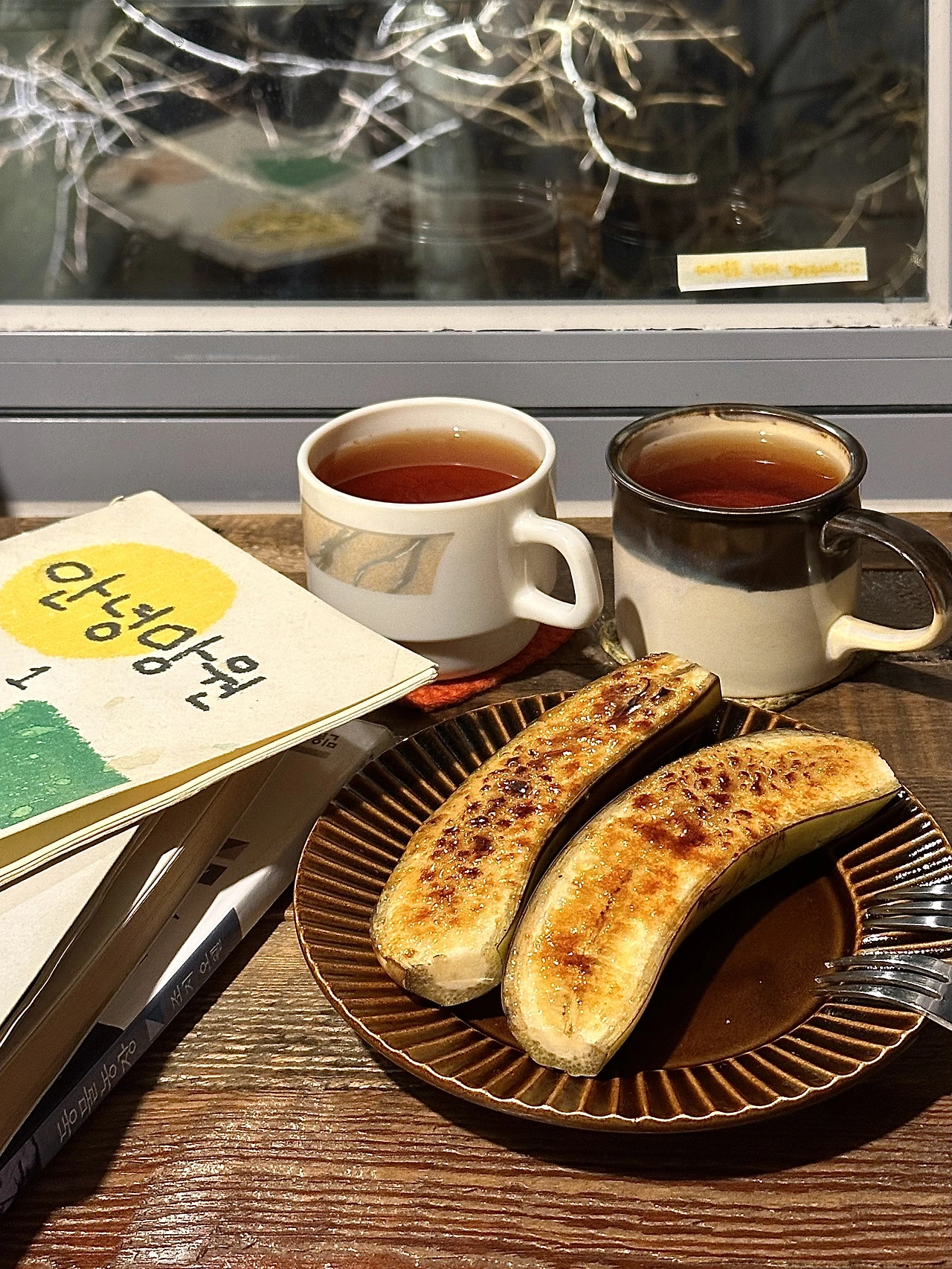 골목마다 햇살이 흩뿌려진 한낮의 연남에서 만나 그동안 가보지 못했던 카페들을 호핑했다. 호핑이라 하면, 말 그대로 여러 카페를 깡충깡충 옮겨 다니는 것. 공부, 작업, 약속과 같은 목적성을 띠고 카페를 찾는 것이 아니라, 오로지 분위기만을 즐기기 위한 걸음은 우리에게 일상을 유영하는 감각을 길러주었다. 그곳에서 그간 한켠에 묵혀두었던 책을 하나씩 주워 들고 창 틈으로 비치는 햇살을 담요 삼아 온종일 각자의 독서를 즐겼다. 그러다가 잠이 솔솔 밀려오면, 서로의 어깨에 기대어 짤막한 단잠을 청했다. 비가 오는 날이면 반짝이는 윤슬이 훤히 내려다보이는 리버뷰 카페 통창 근처에 자리를 잡고 앉아 삶에 대한 수다를 도란도란 나눴고, 다음 날 아침 출근이 걱정되지 않는다는 유리한 고지를 선점한 채 북악산 팔각정으로 올라가 쌍화차를 한 잔씩 집어 들고 늦은 밤까지 재잘거리기도 했다. 붐비지 않는 동네 포차에서 마주 보고 앉아 새벽녘까지 거나하게 취해버린 적도 많았다. 우리는 그렇게 서로의 일상에 녹아들어 단단한 하나가 되었다.