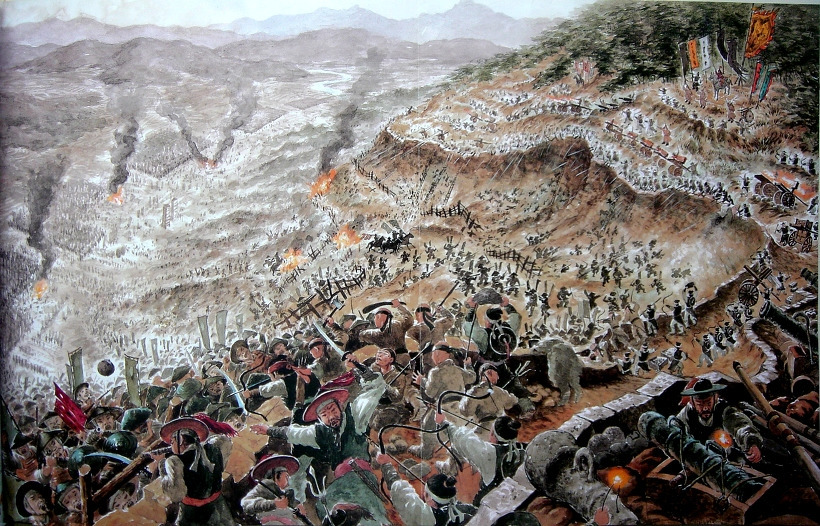 마을을 약탈하는 일본군 70명의 목을 베어버린 사건입니다