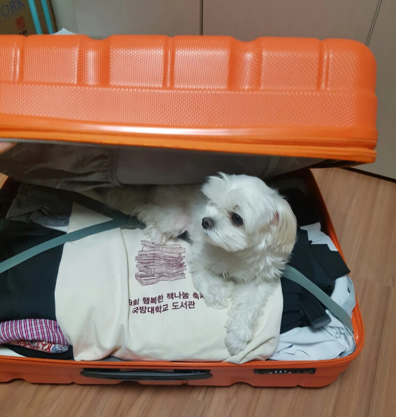 저는 캐리어 속에 들어가 앉아 버티기 신공을 매번 선보였어요.