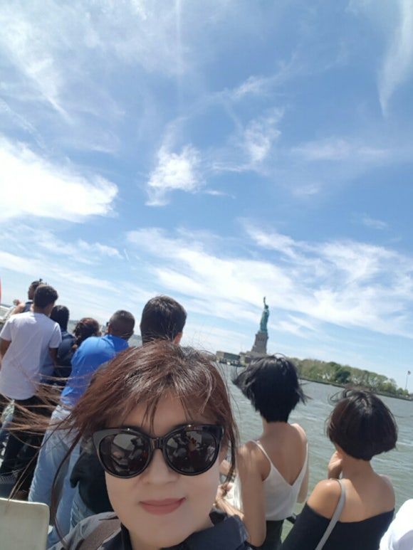 첫날은 누나들과 시간을 보내고, 다음날 저희는 예약해 둔 패키지 이용권을 이용해 배를 타고 들어가 자유의 여신상을 보고 나와선 버스 투어로 맨해튼을 관광했어요.
