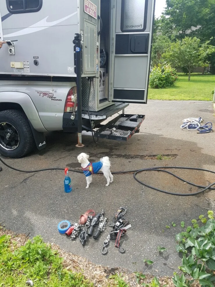 숙소는 좁았지만 숙소 밖 환경은 아빠가 캠핑카를 정비하기에 안성맞춤인 곳이었어요.