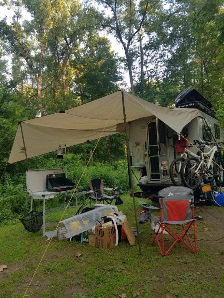드디어 한 달 만에 저희는 소거티스를 벗어나 여행을 시작하게 되었어요. 뉴욕 쇼댁 아일랜드 주립공원 내 캠핑장을 가는 길은 쉽지 않았어요. 차량 캠퍼 안에 실린, 사실 발 디딜곳이 없을 정도로 물품으로 꽉 차 있었거든요. 불안 불안하게 하는 캠핑카를 운행해 저희는 뉴욕 쇼댁 아일랜드 주립공원에 도착했고 공원 내에 있는 캠핑장 한 곳을 지정받아 들어갔어요.
