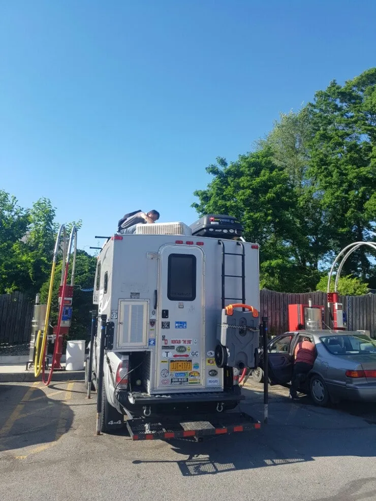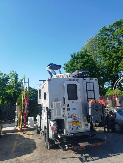 아빠의 캠핑카 셀프 정비 마지막 작업으로 차량 지붕 위에 태양열 충전 설치를 마지막으로 대단원의 막을 내렸어요.