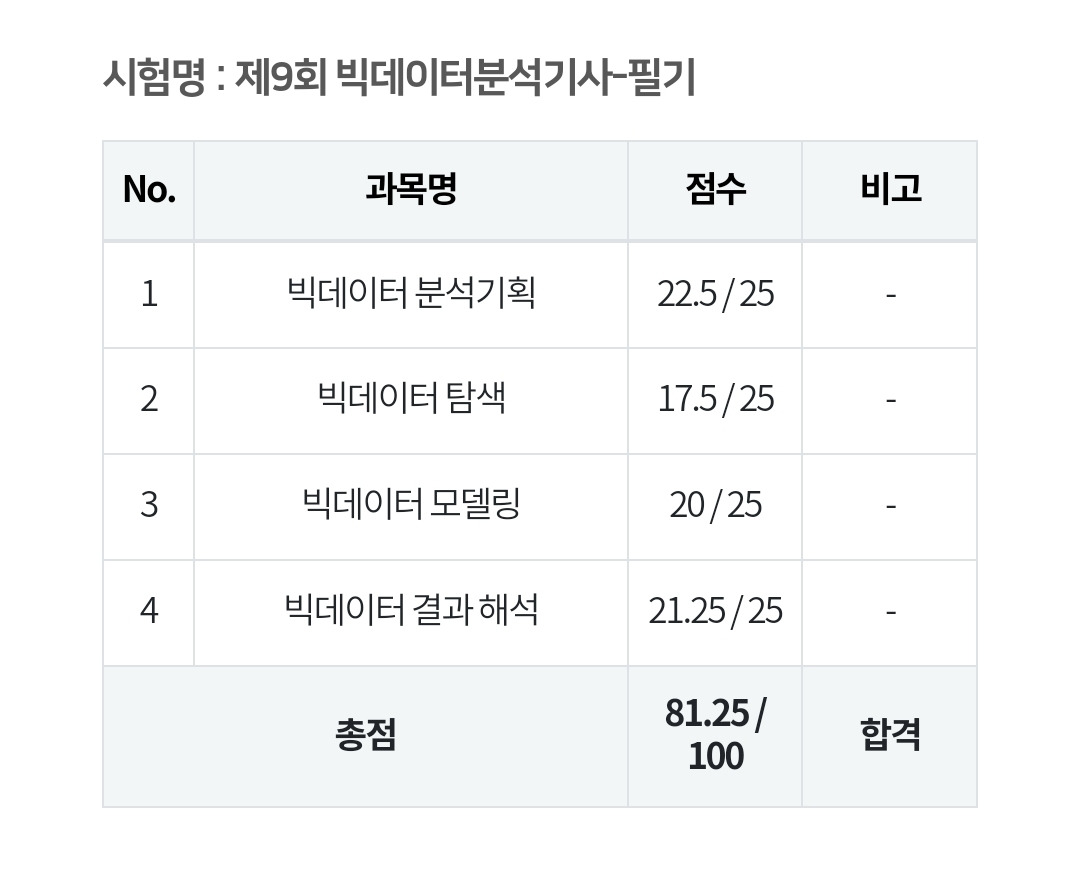 두 달 전 지난번 봤던 빅데이터분석기사 필기시험의 결과가 나왔었다.