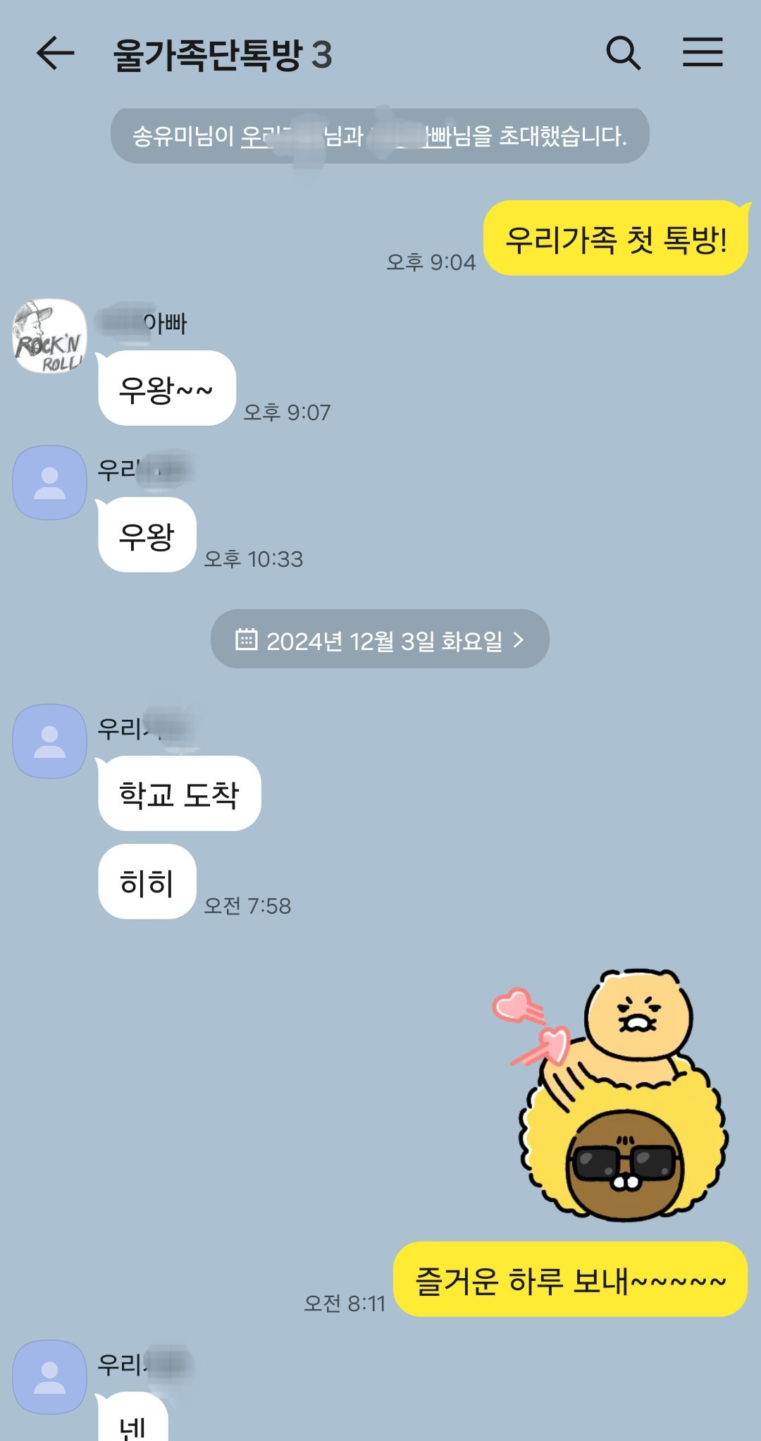 언젠가 우리 네식구가 모여 있는 단톡방을 기대해본다.