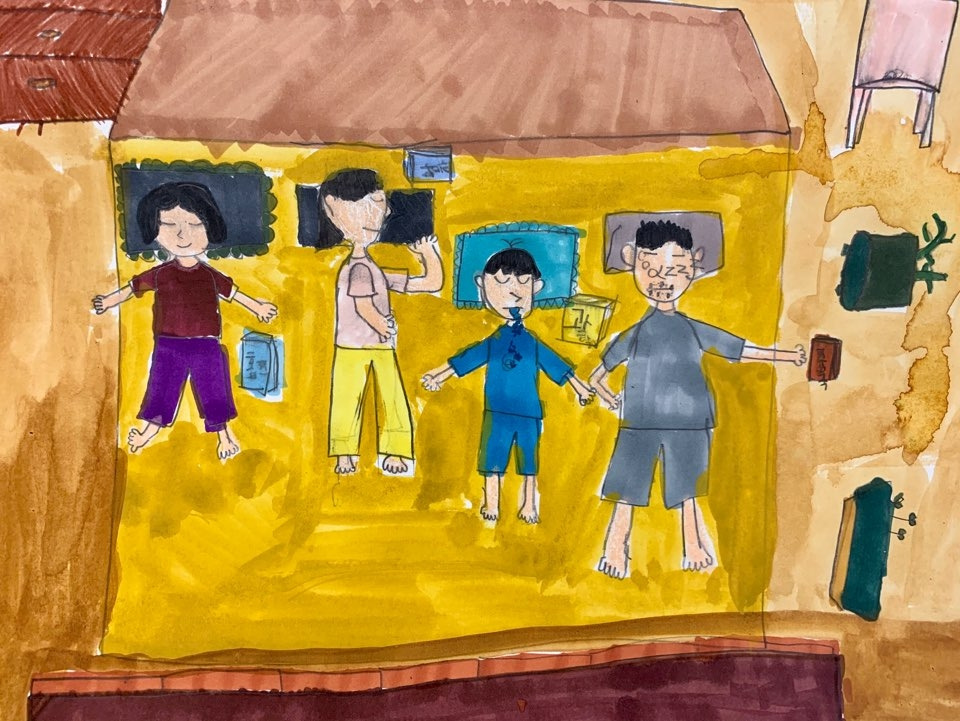 이 홍보문을 마주하다 보니 나는 이 넓은 도서관에서 특정 분류의 책들만 읽어 왔구나 하는 반성을 하게 된다. 읽기 쉬운 책, 재밌는 책에만 관심을 두는 나를 겨냥한 말인 듯싶어 마음이 콕하고 찔린다. 한동안 추리소설과 스릴러에 빠져 있어 맘에 드는 작가의 책을 하나하나 읽어가던 때가 있었다. 그 당시 둘째가 그린 잠자고 있는 가족들을 그림 안에 내 머리맡에는 '남자'라는 책이 놓여있었다. 데이비드 발다치라는 작가의 '모든 것을 기억하는 남자', '괴물이라 불린 남자', '죽음을 선택한 남자', '6시 20분의 남자', '기억을 되살리는 남자'등 시리즈를 몇 달에 걸쳐 OOO남자만 읽었으니 아이의 눈에 '우리 엄마는 맨날 남자 책만 읽는구나'했을 법도 싶다. 그림 속에 딸아이 옆에는 홈즈책이, 아들옆에는 과학상식 책이, 남편 옆에는 중국어책이 놓여 있다. 이 그림이 한 4년 전이었으니 아들한테 다시 그려보라고 하면 지금은 어떤 그림이 나오려나. 아마 누나 옆에는 고등참고서가 내 옆에는 통계학책이, 그리고 아들 옆에는 영어단어장이, 남편 옆에는 운동책이 있지 않을까. 이 정도면 어느 정도 편(偏)독에서 벗어났다고 할 수 있을까?